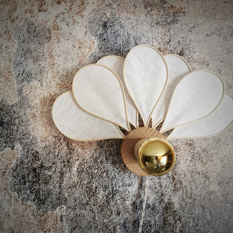 Applique murale fleur 7 pétales en rotin et lin – Lampes et veilleuses neuf – Capharnaüm