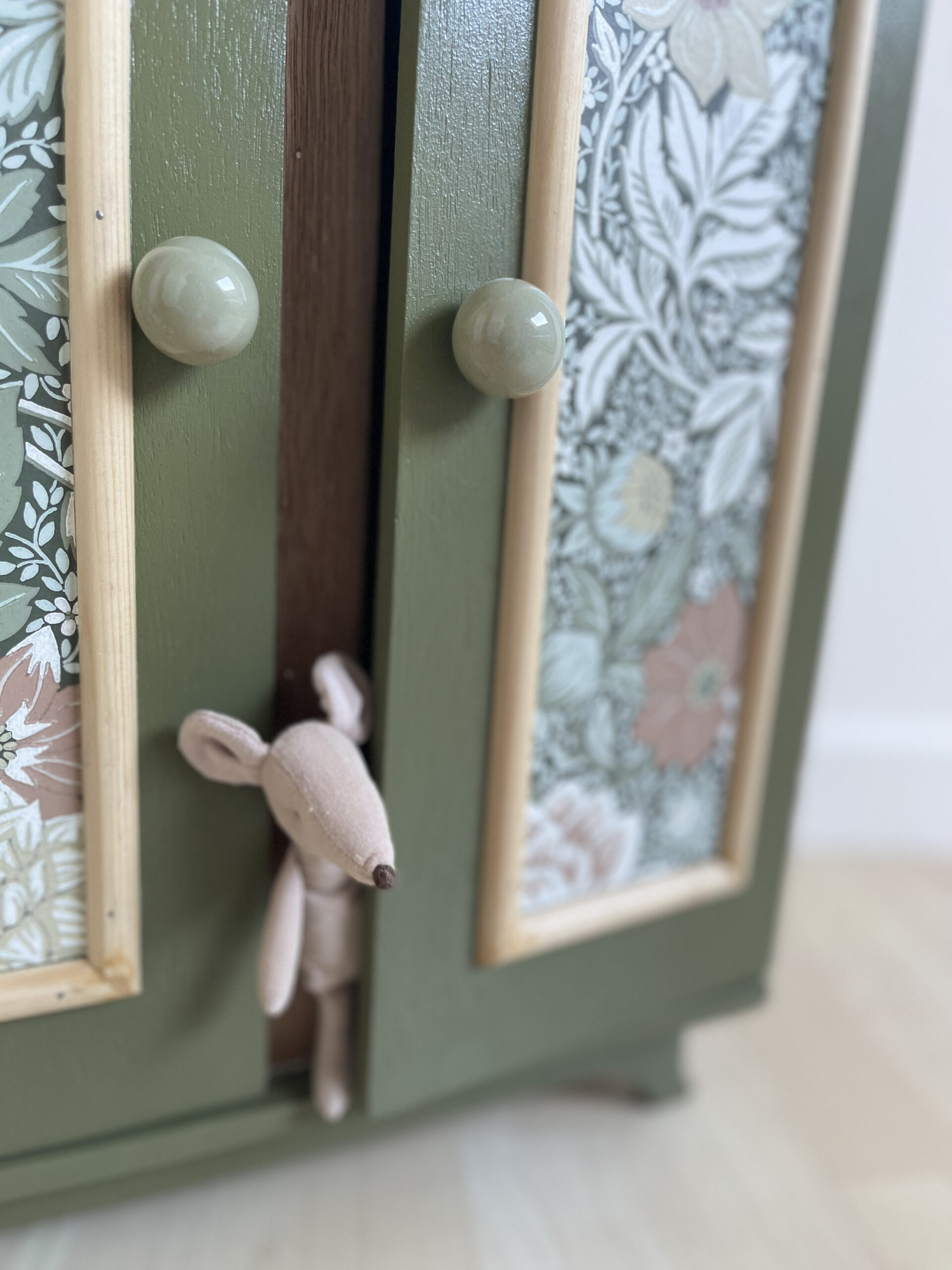 Des baguettes on été rajoutées sur les portes afin de donner du cachet à cette armoirette.