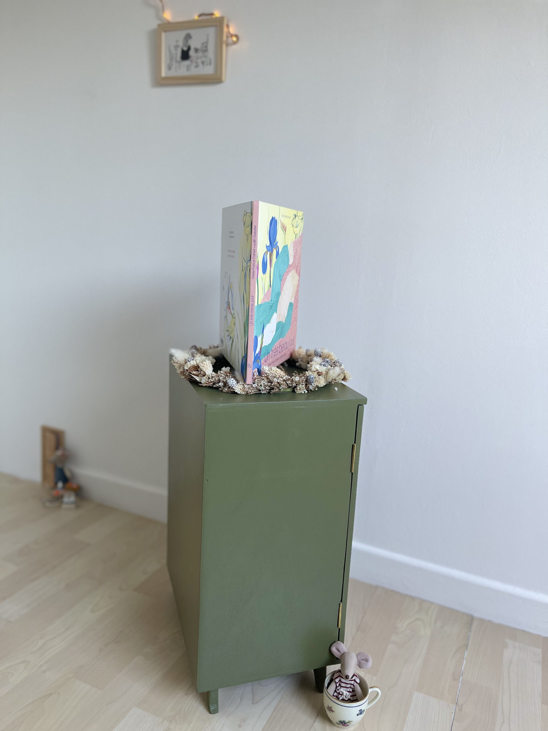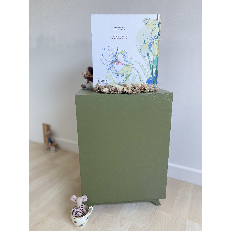 Elle est passé de rose fushia à « vert futaie » de chez COLIBRI.