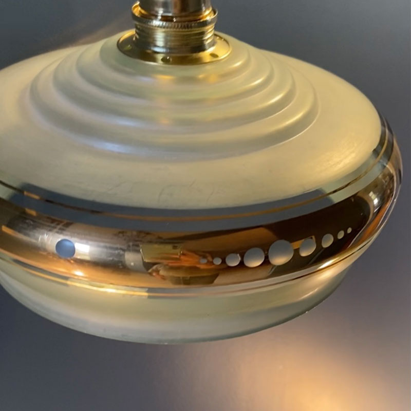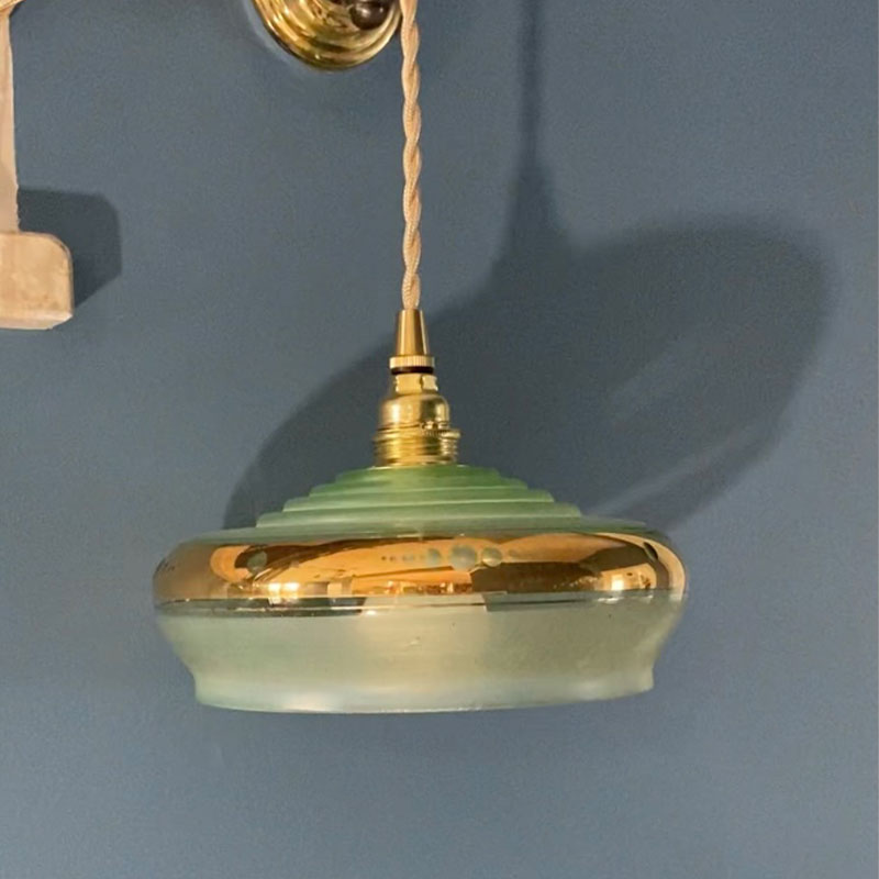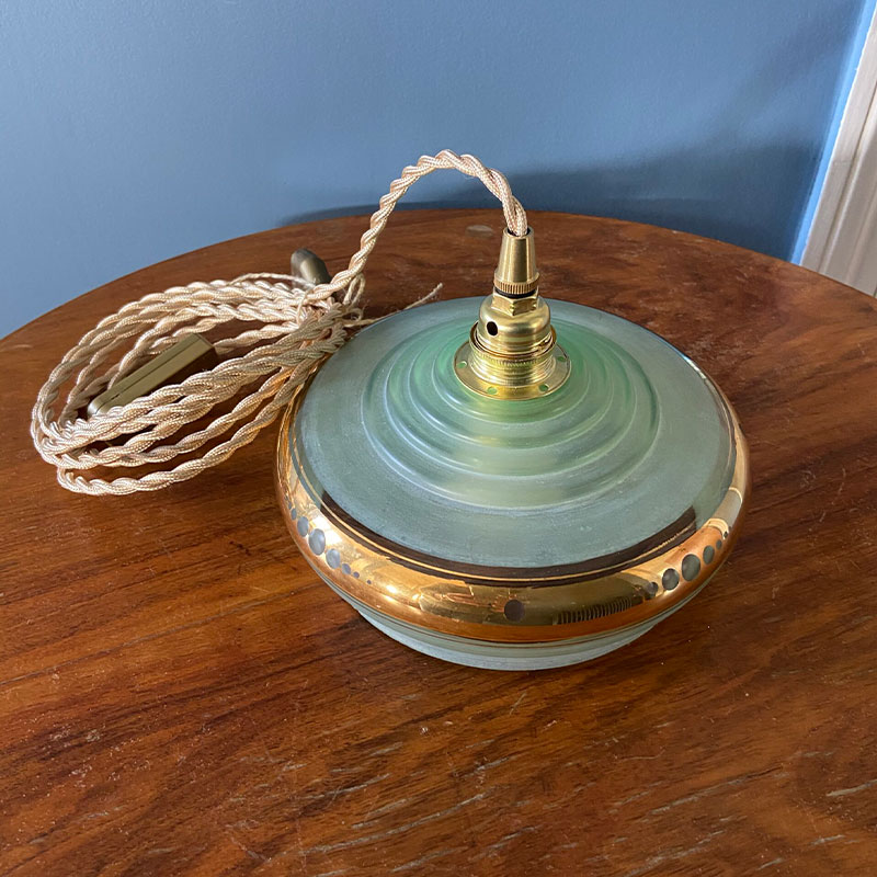 Baladeuse créée avec un globe en verre vert provenant d’un lustre datant des années 50.