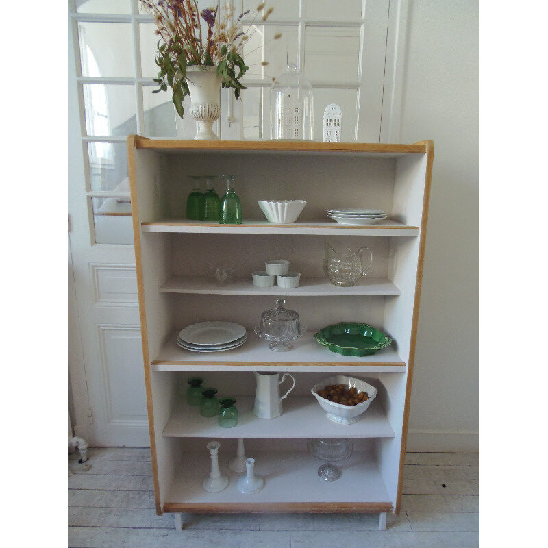 Bibliothèque années 50 gris perle – Bibliothèques vintage – Capharnaüm
