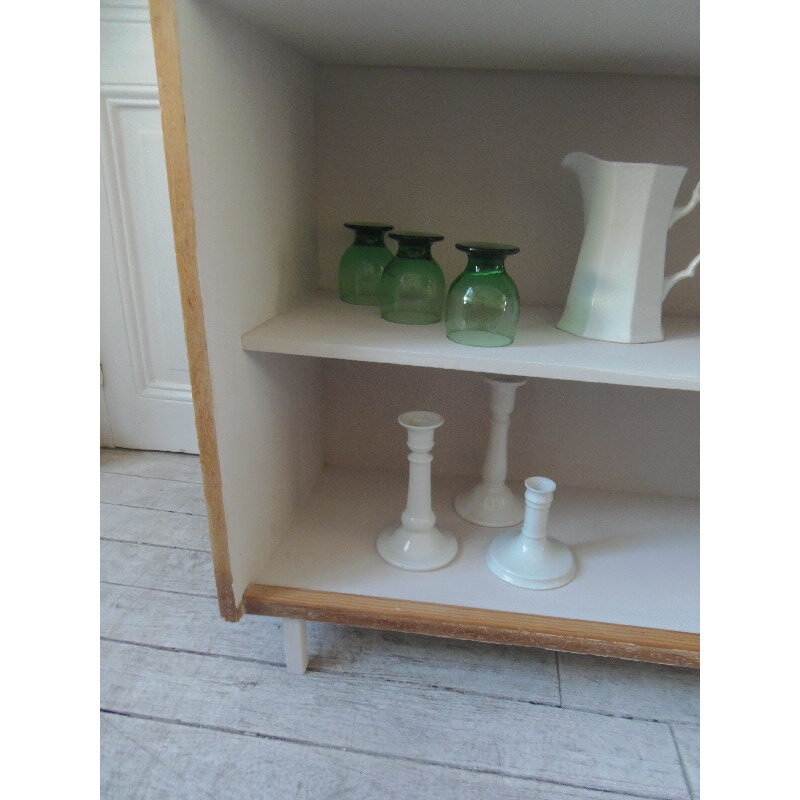 Cette bibliothèque des années 50 présente quelques traces du temps, pied arrière droit, ce qui fait son charme!