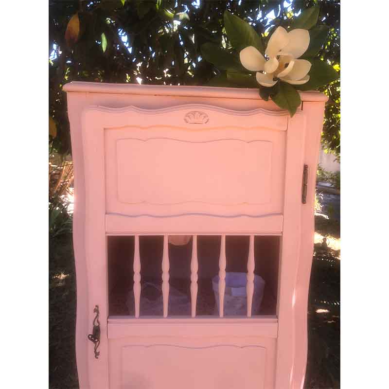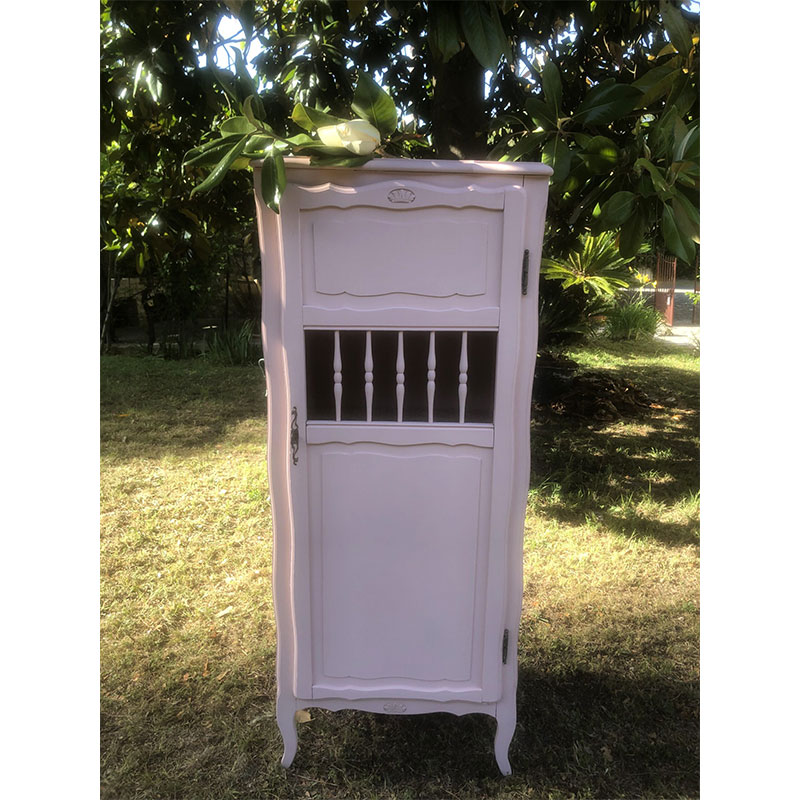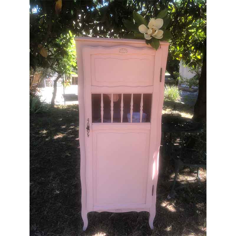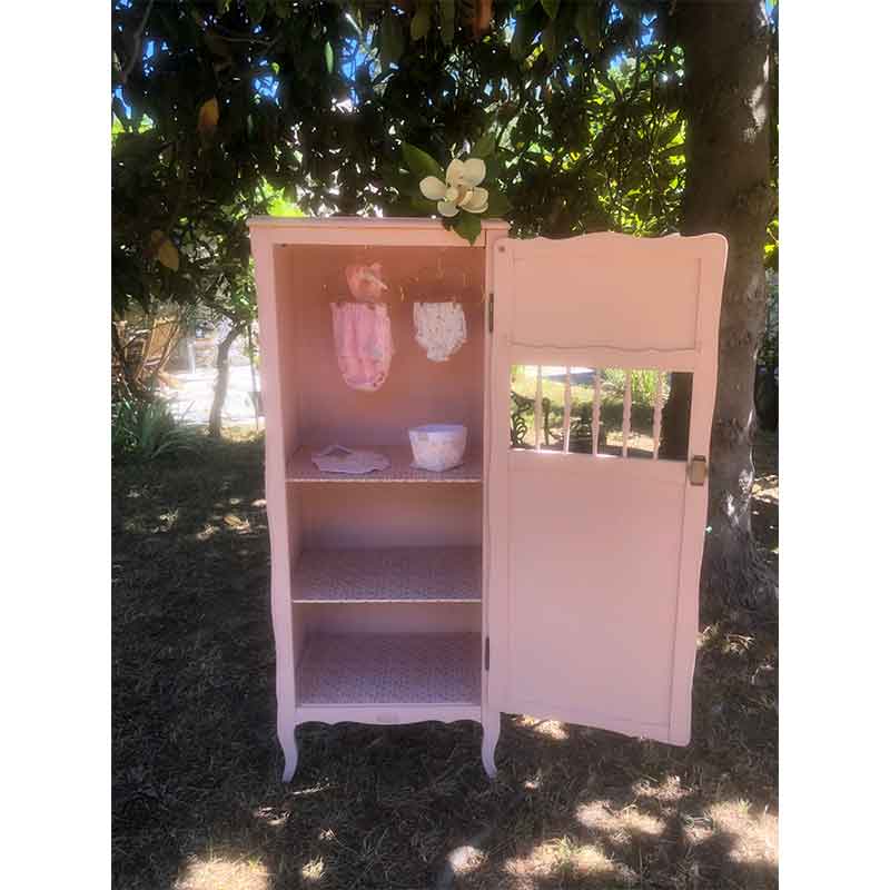 Bonnetière vintage rose pâle – Armoire vintage – Capharnaüm