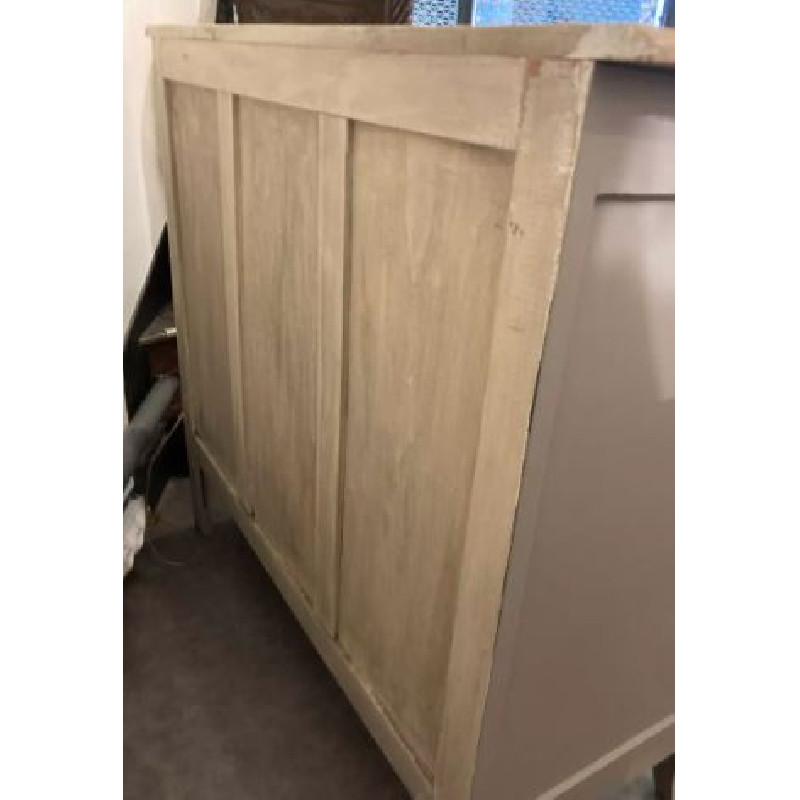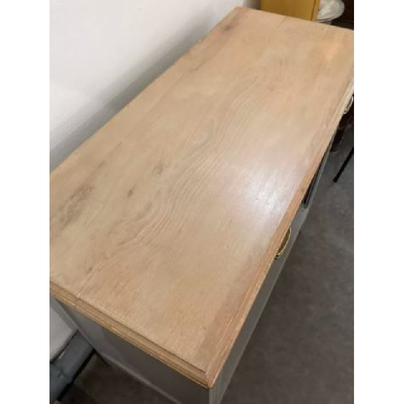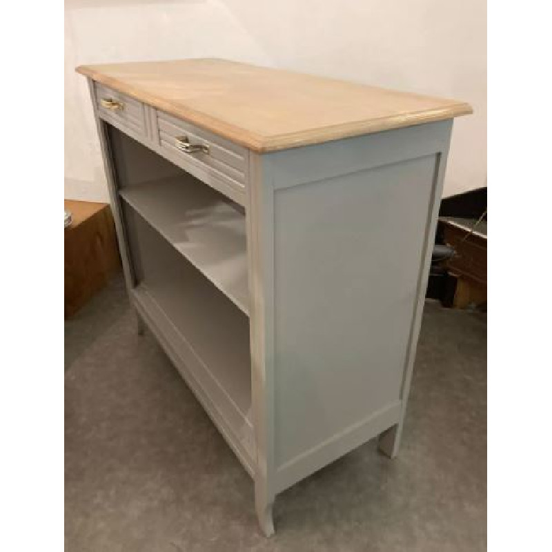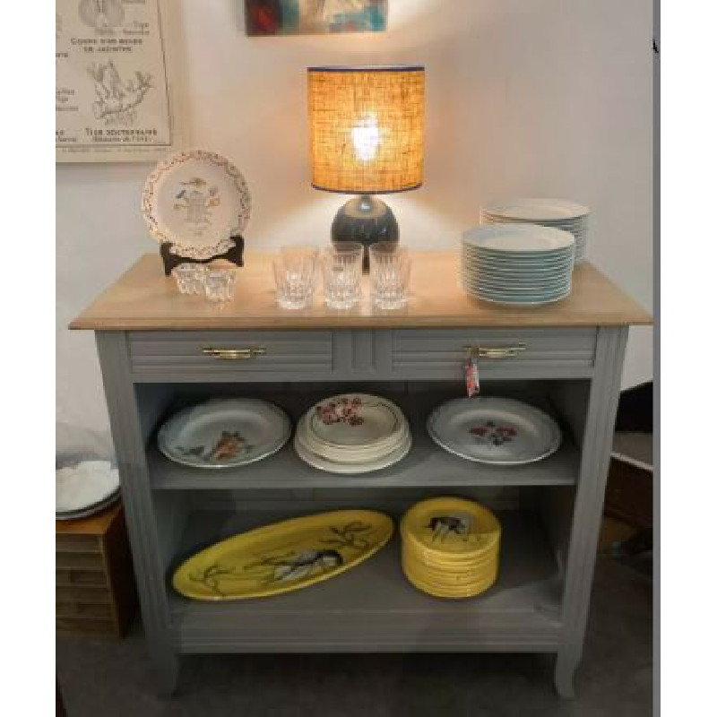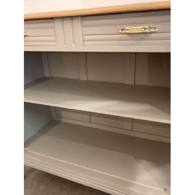 Buffet Art Déco ouvert avec 2 tiroirs : il a été entièrement rénové en gris clair cendré satin