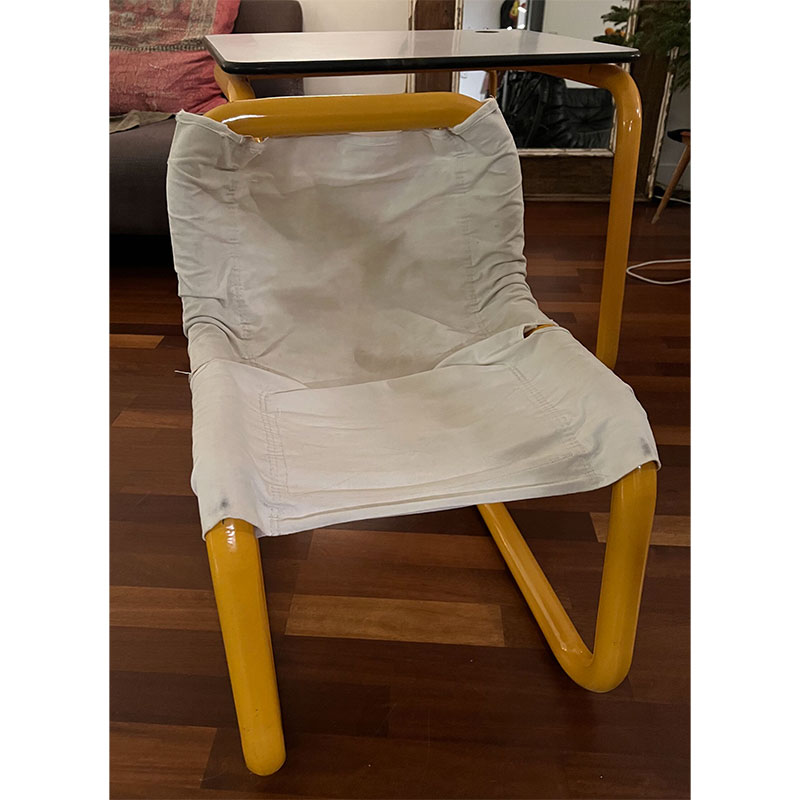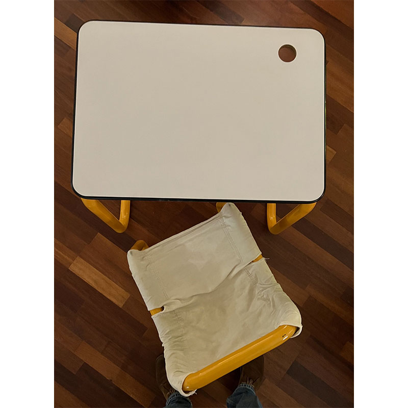 Bureau + chaise tubulaire jaune année 70’s – Capharnaüm