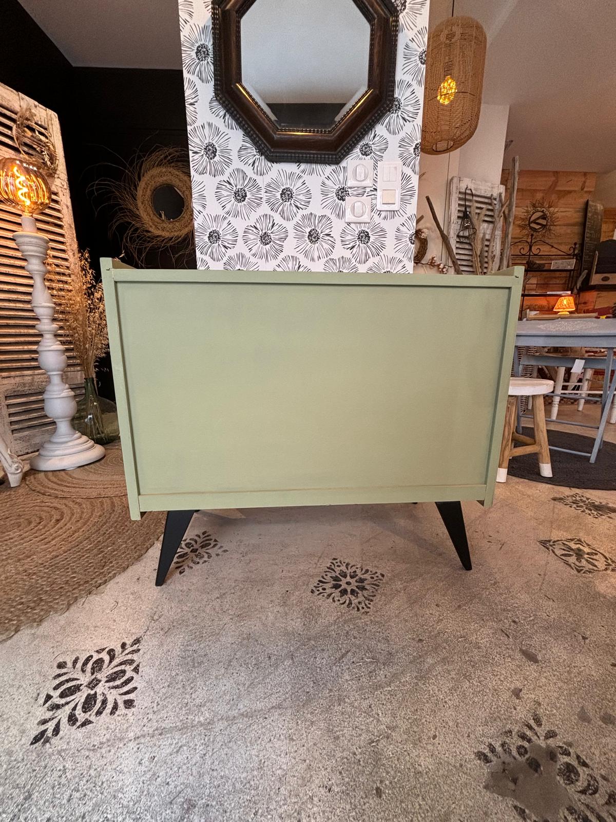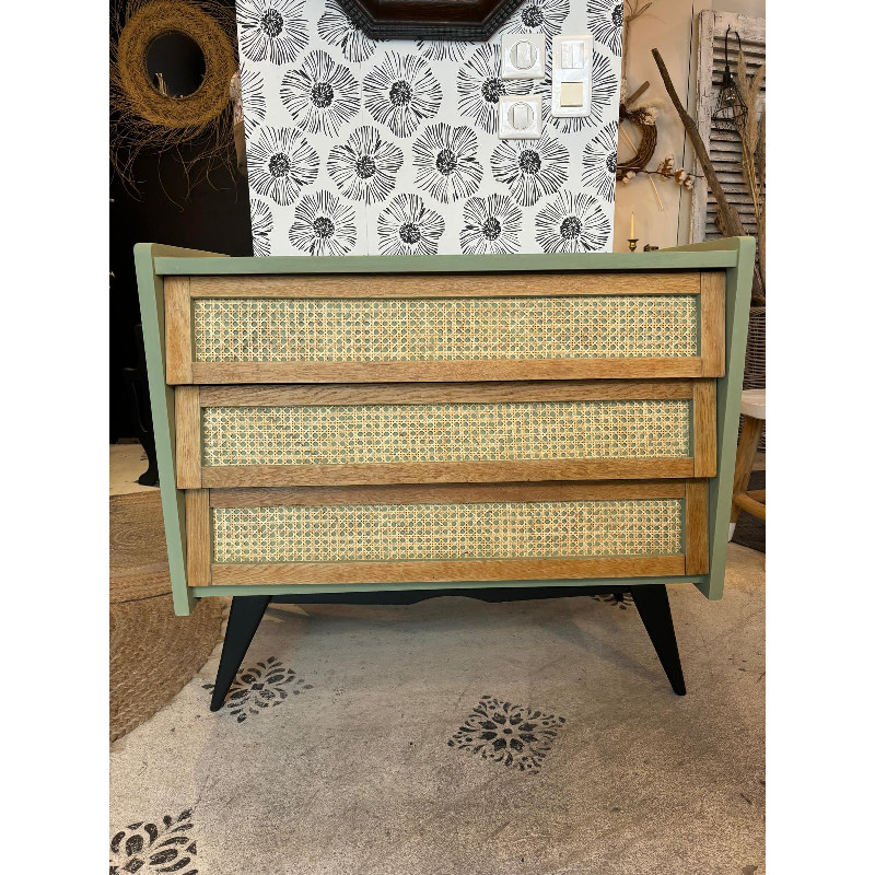 Voici notre commode années 50-60 style scandinave agrémentée de cannage.