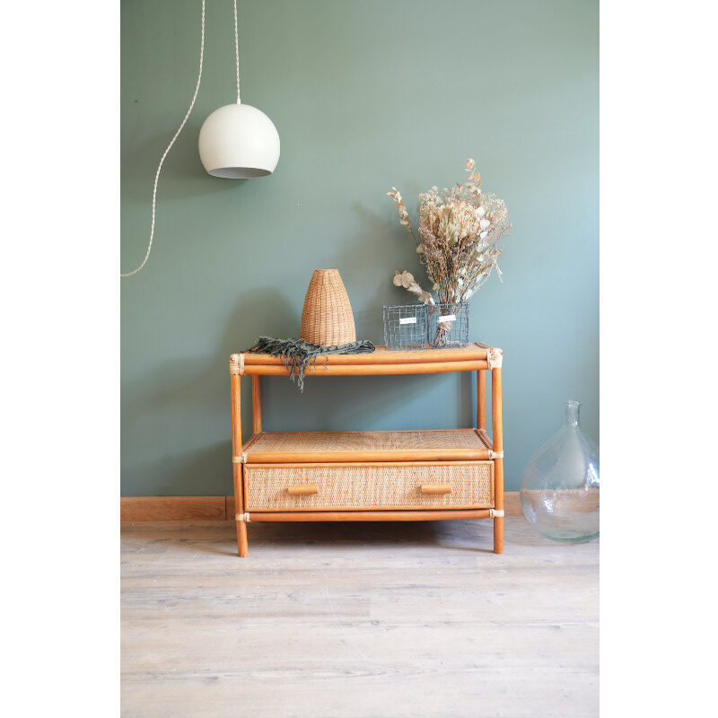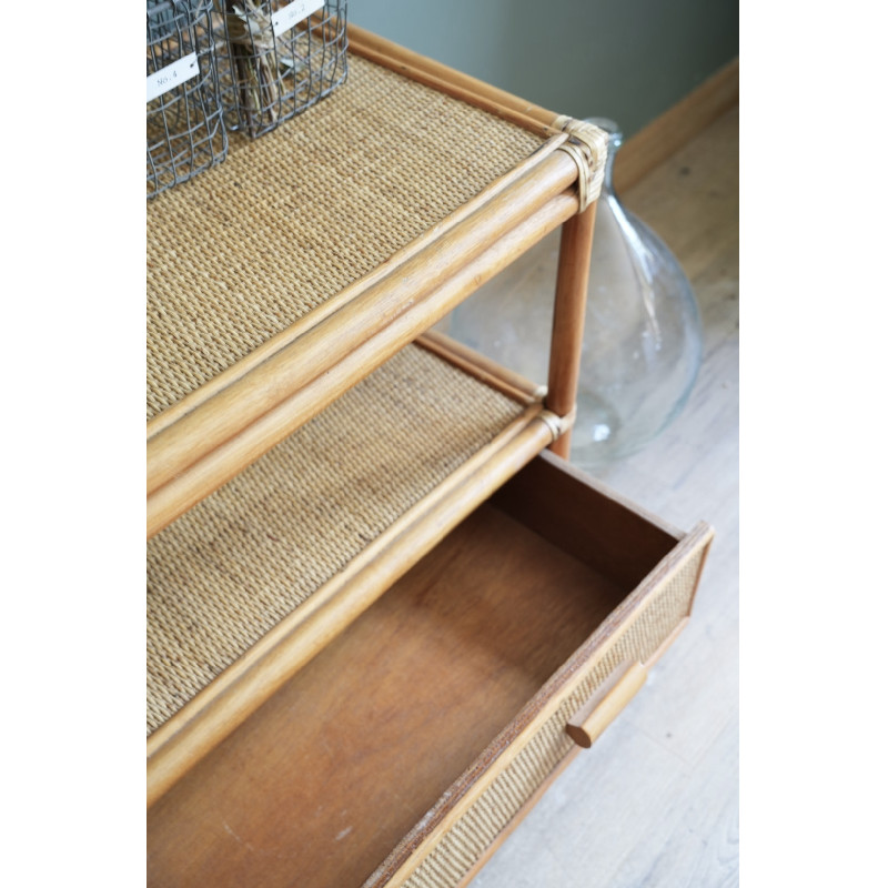 Petite commode / desserte des années 60 en rotin.