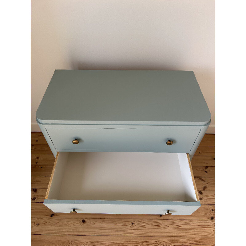 Jolie commode vintage 3 tiroirs en bois entièrement rénovée pour une touche charme dans la chambre d’enfant!