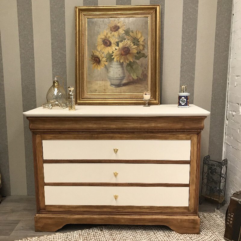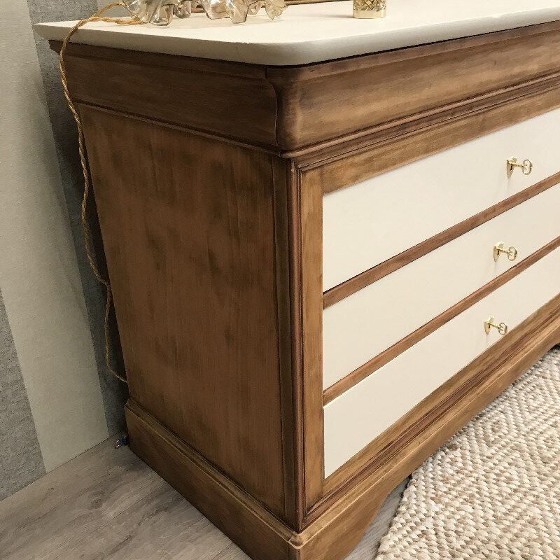Grande commode blanche et bois – Commodes et chiffonniers vintage