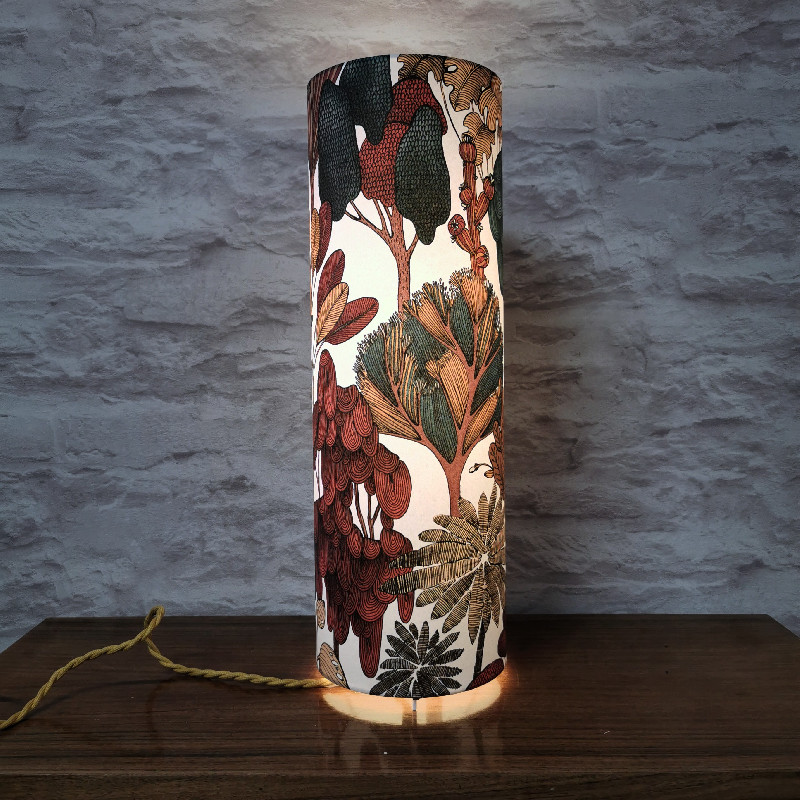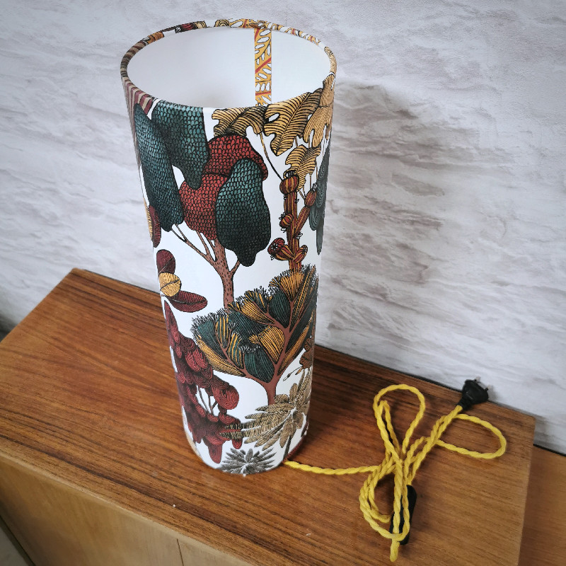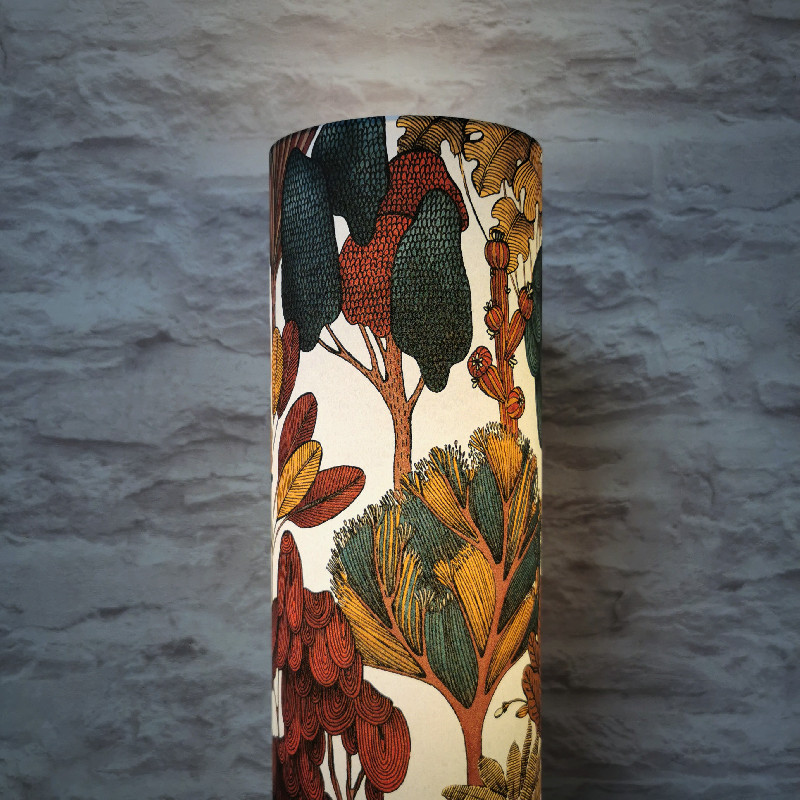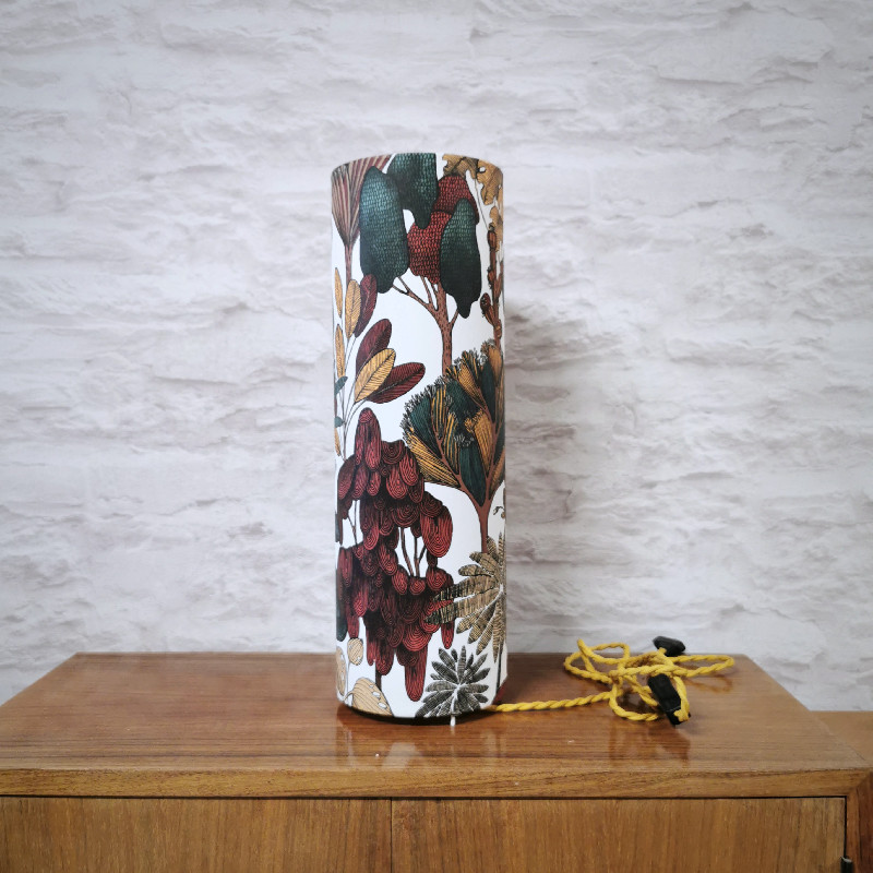 Lampe tube d’ambiance, imprimé motif vintage fleurs et feuilles, hauteur 46cm