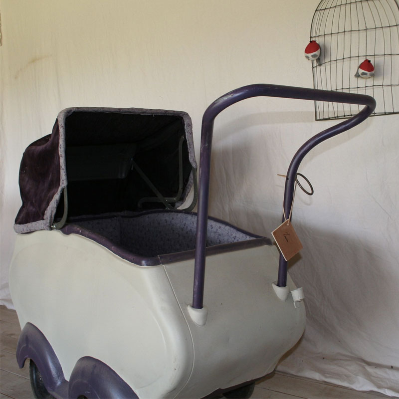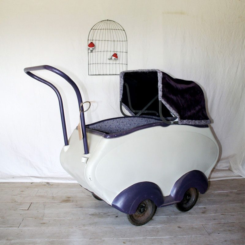 Invitez les 50′ dans la chambre de votre tout petit avec ce Landau de la marque Terrot réhabilité en confortable berceau : entièrement carrossé, l’intérieur de ce bolide a été retapissé avec un tissus fleuri ton aubergine.