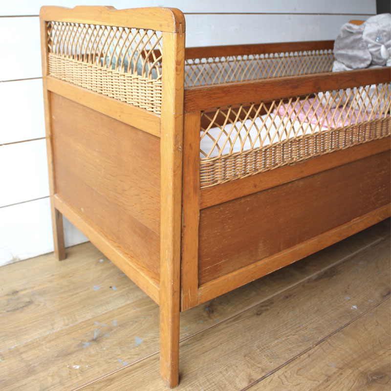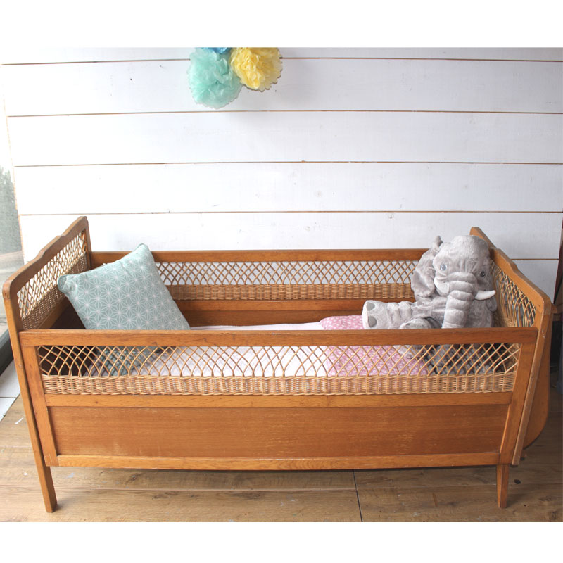 Lit bébé bois et osier – Lit bébé vintage