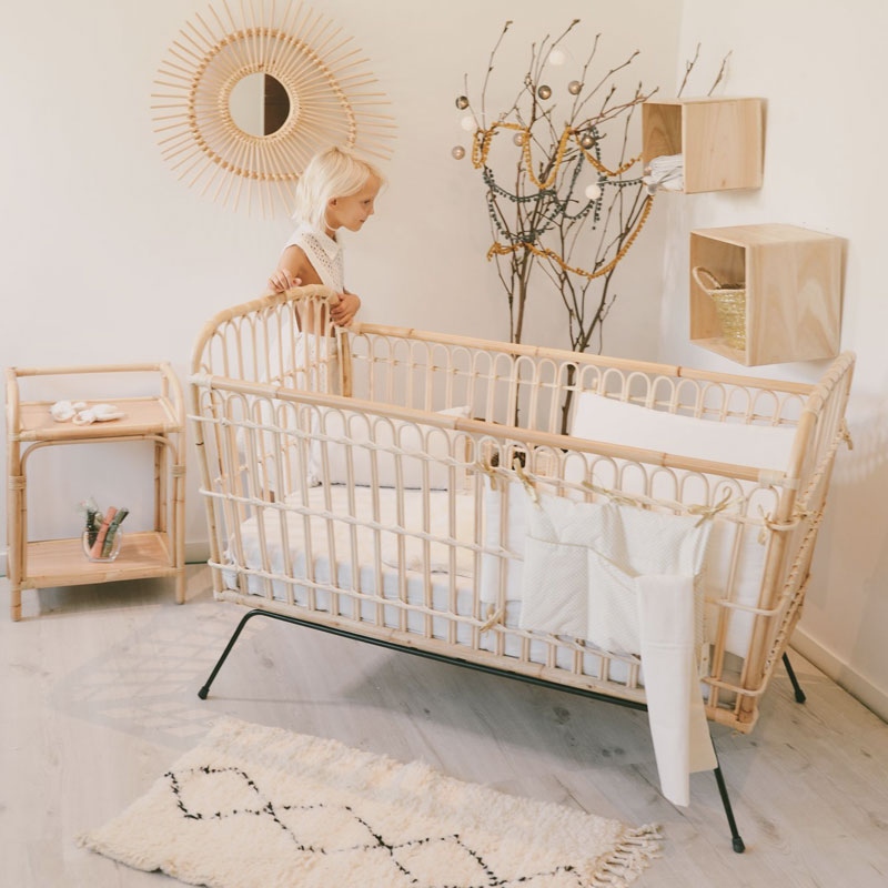 « Exit » le lit à barreaux trop classique et place au rotin qui s’associera à merveille avec tout style de déco et permet au rotin de devenir aussi bien masculin que féminin.
