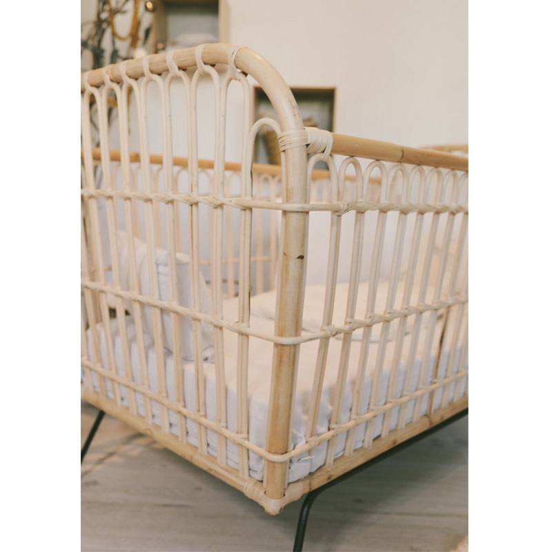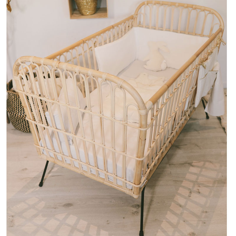 Lit bébé rotin et métal 60 x 120 cm – Réédition