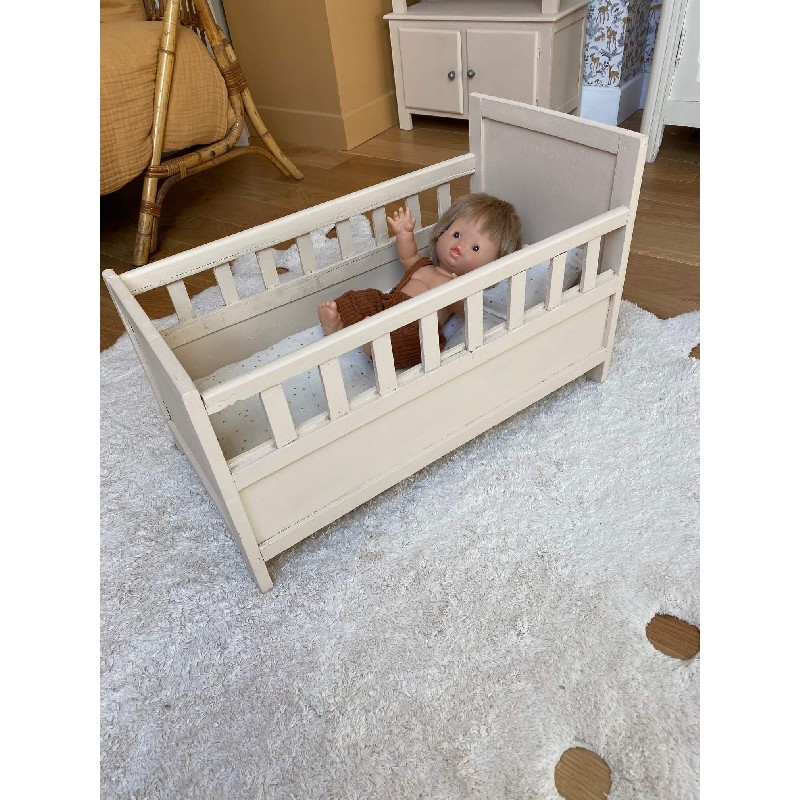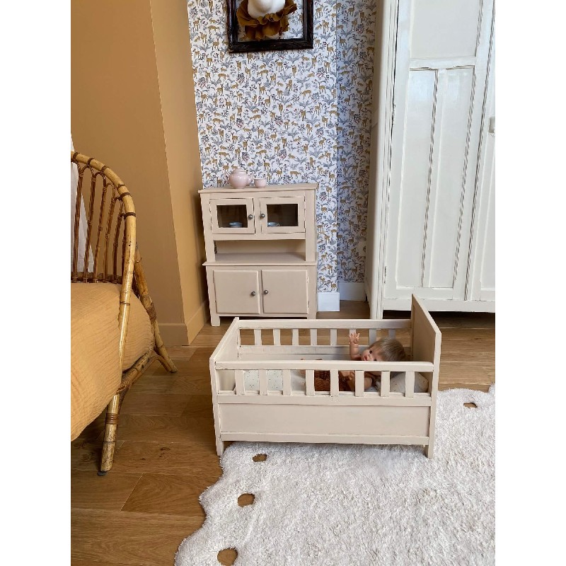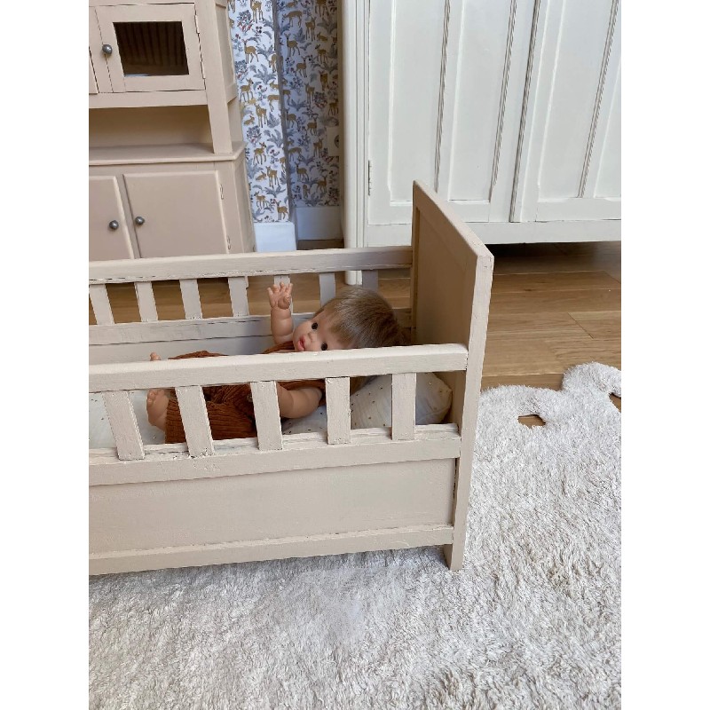 Lit de poupée vintage en bois – Rose