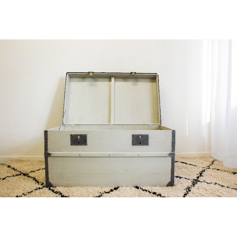 Malle de voyage bois et zinc grise – Capharnaüm