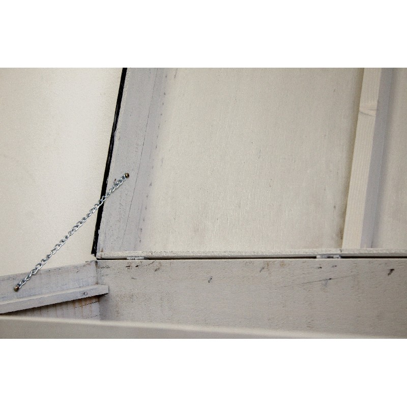 Malle de voyage ancienne en bois entièrement restaurée. Cerclages en zinc,. Coloris gris clair. Intérieur peint également. Se maintient ouverte à l’aide d’une chaînette. Dimensions fermée. L. 80 x P. 47 x H. 43 cm. Idéale dans la chambre ou le salon pour ranger des plaids ou autres accessoires. Peut servir de table d’appoint.