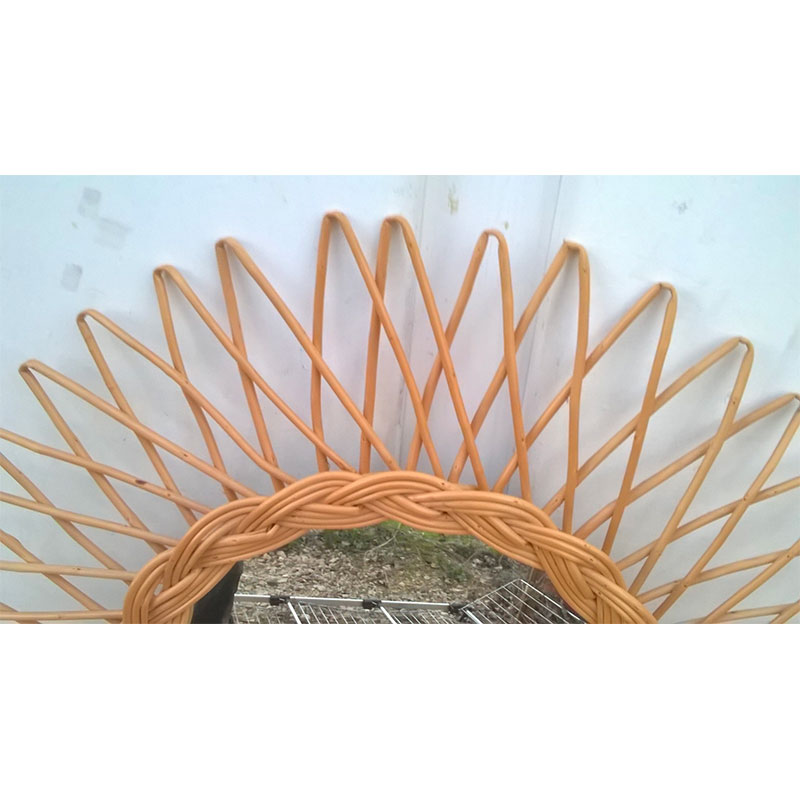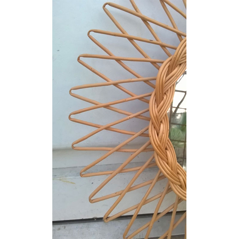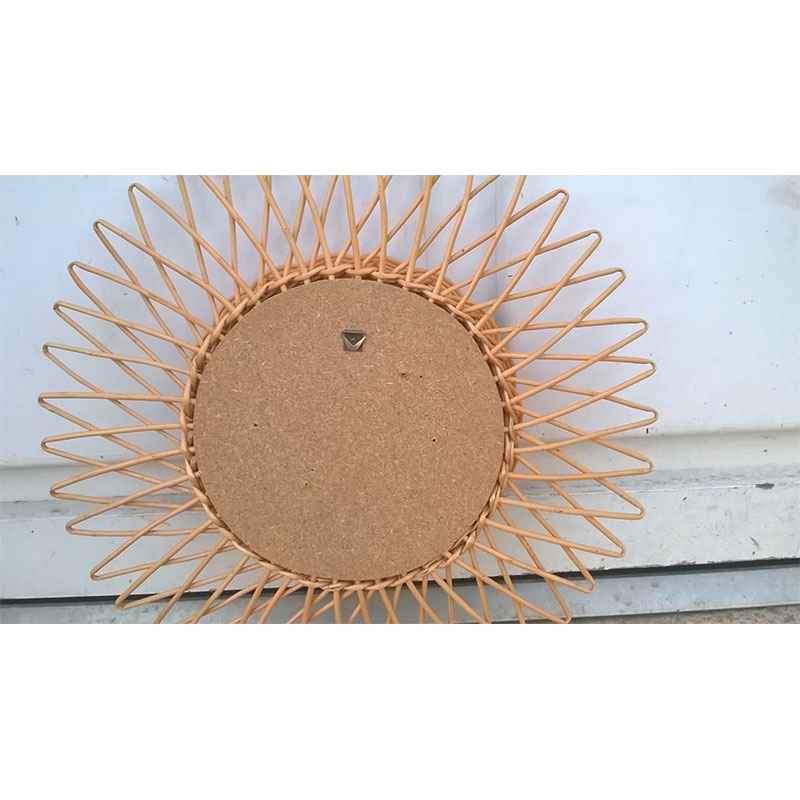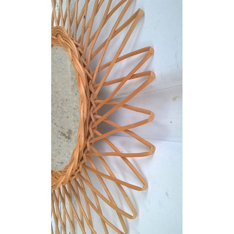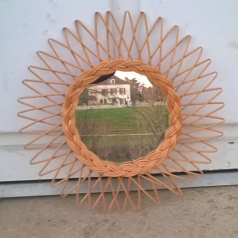 Miroir soleil en rotin tressé 1960
