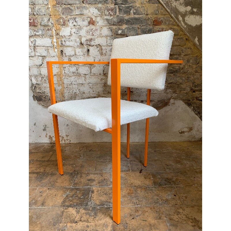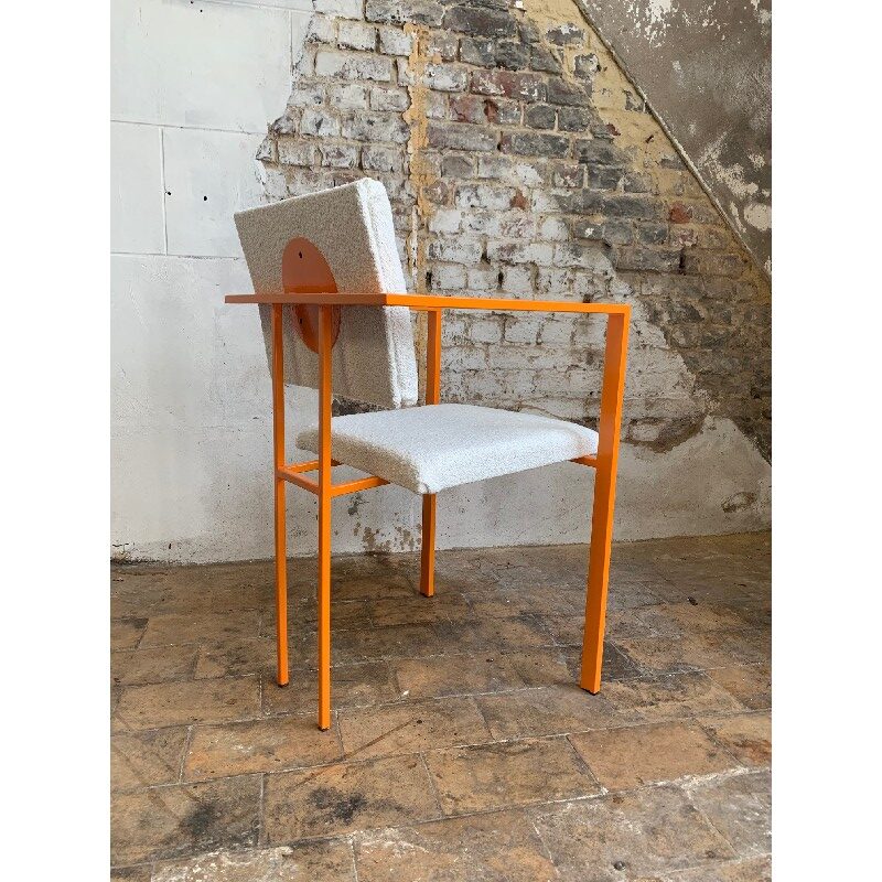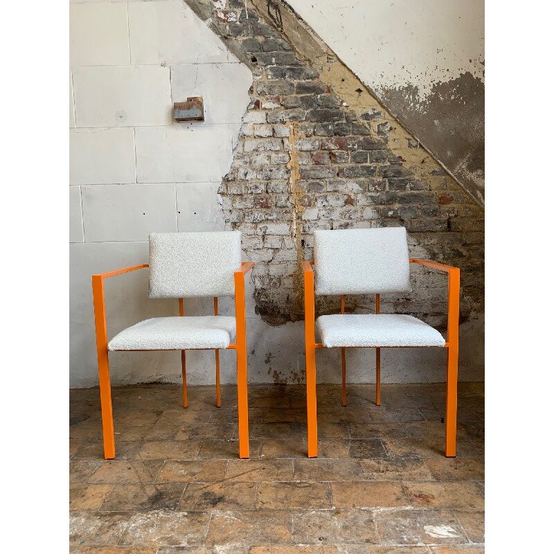 Paire de fauteuils postmodern orange et tissu laine bouclé – Fauteuil vintage