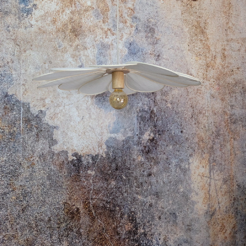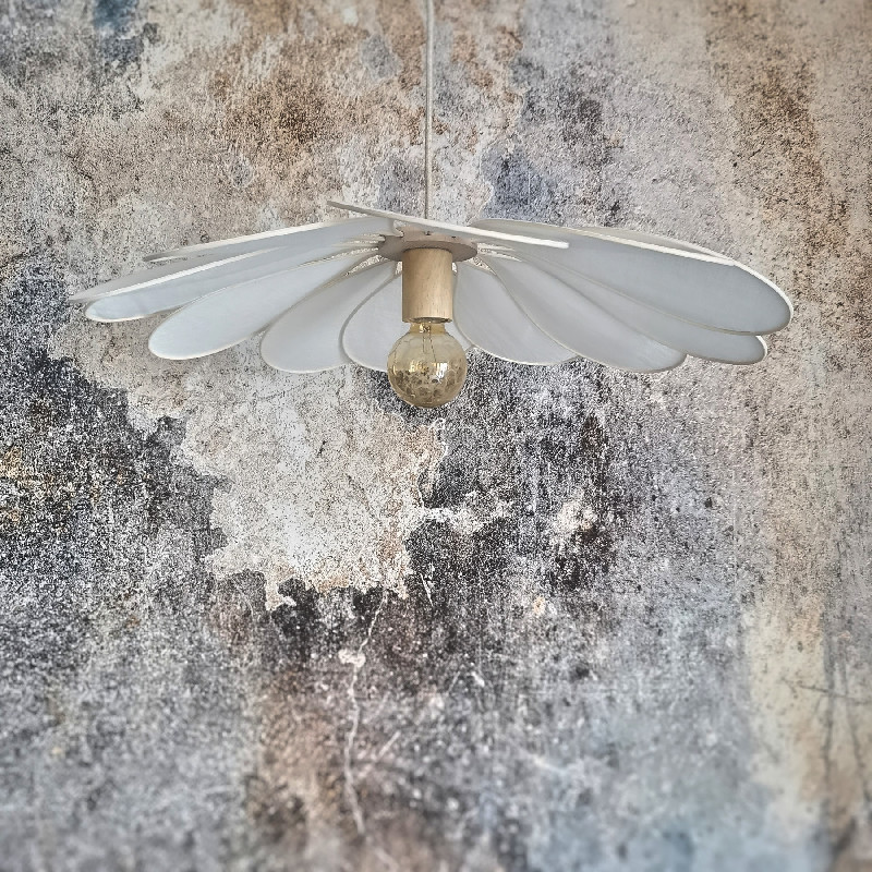Cette suspension avec ses pétales en forme de fleur donnera une touche très douce et aérienne à votre déco, dans l’idée des suspensions des années 70.