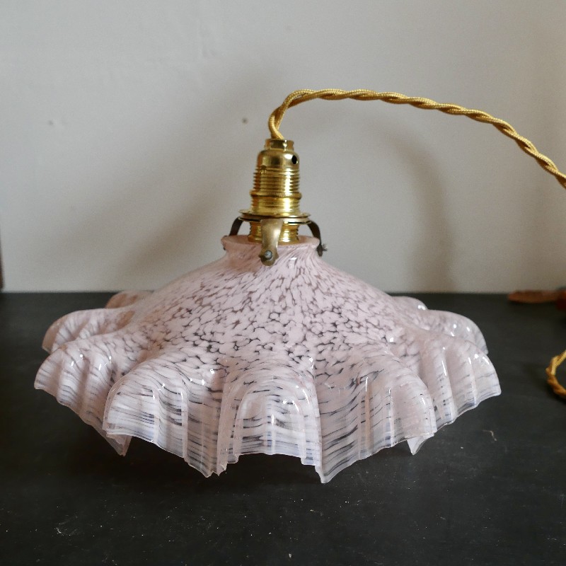 Suspension fleur verre de clichy rose
