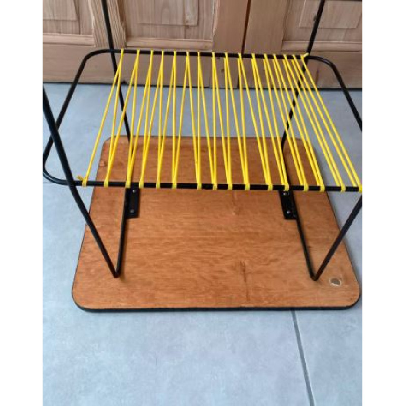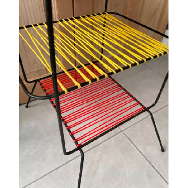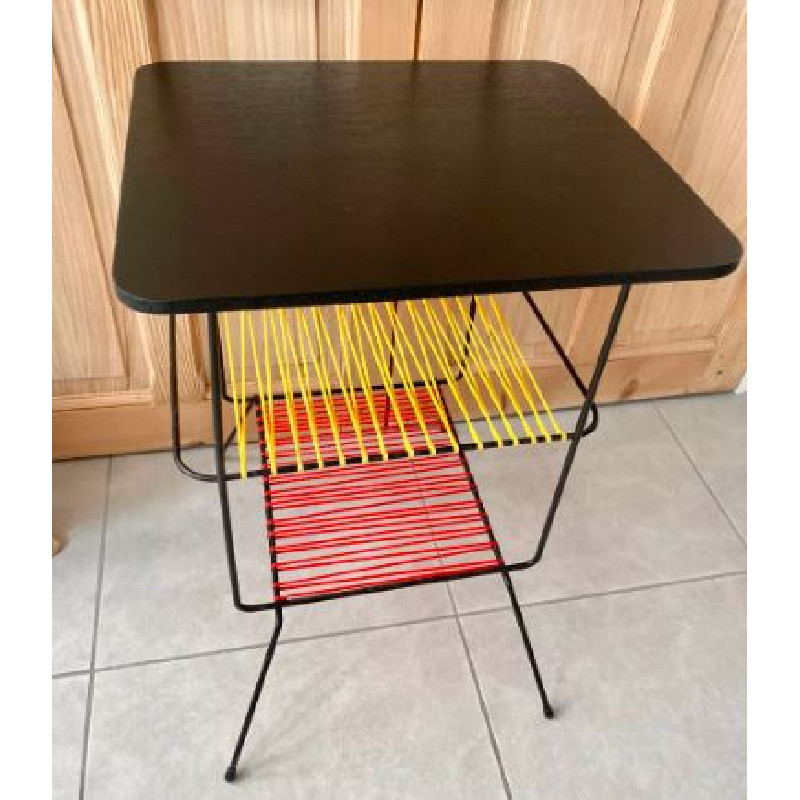 Table années 60 : 3 niveaux dont 2 en scoubidou jaune et rouge.