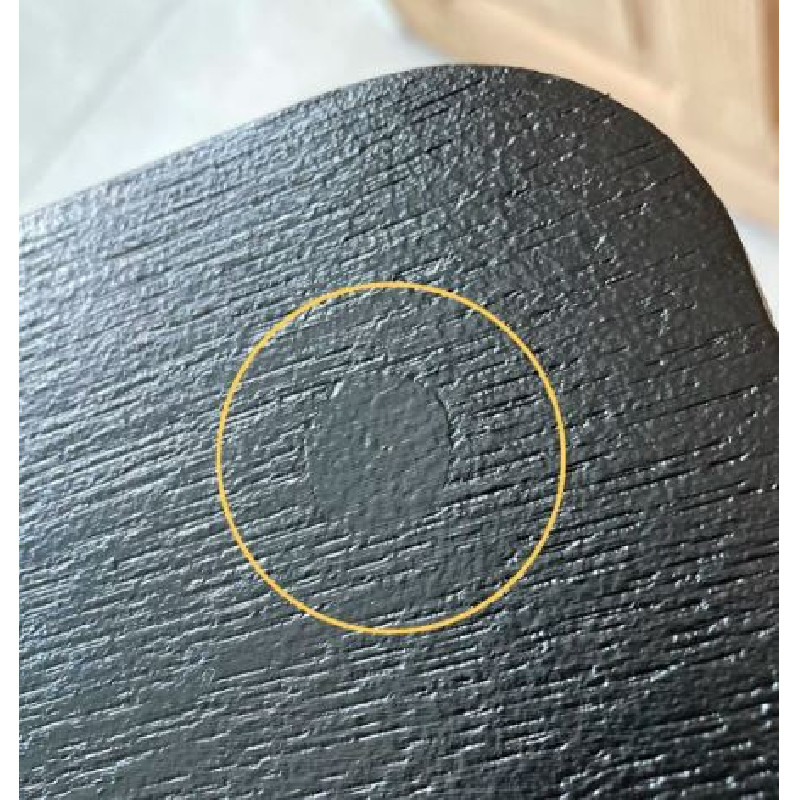 Le plateau d’origine en bois plaqué a été rénové, repeint en noir