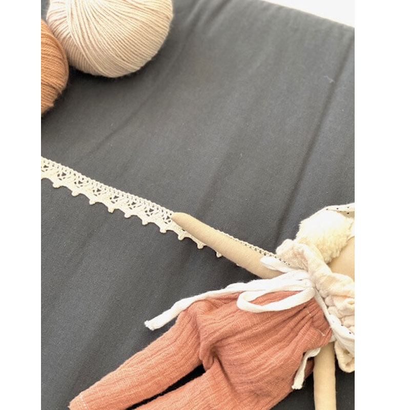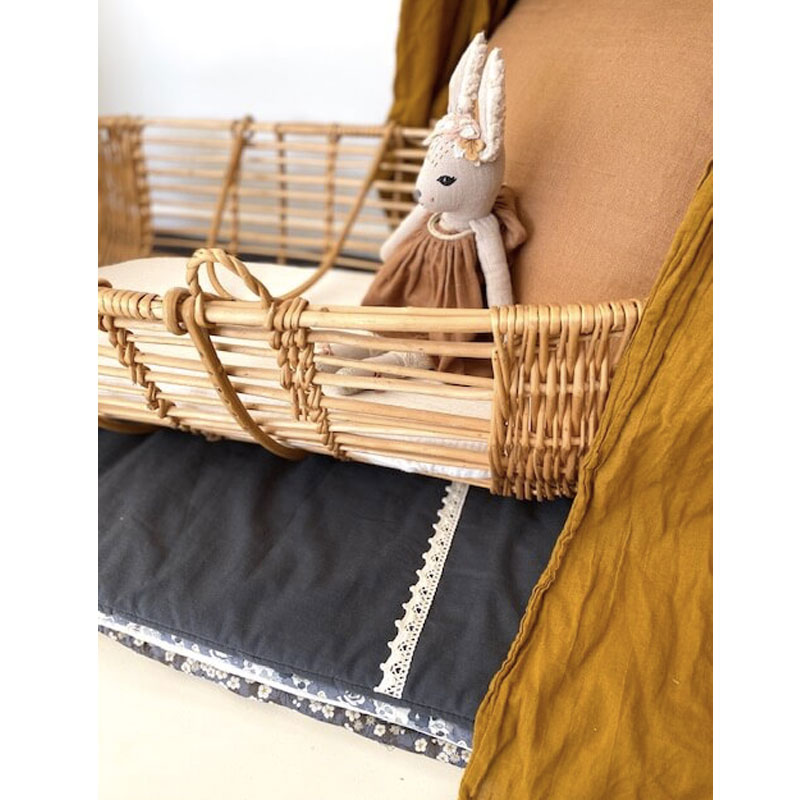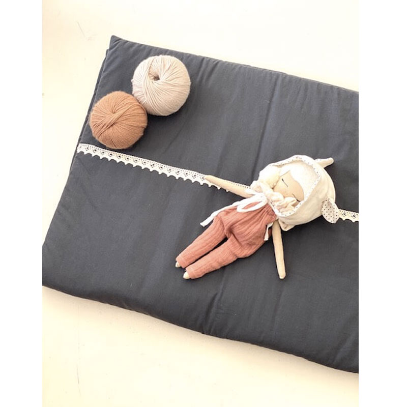 Il vous servira autant posé au sol que dans un parc. Il est en coton noir charbon avec une dentelle écrue et dégage un romantisme chic.